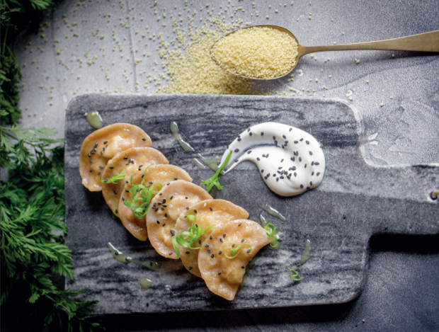 Однажды мы уже писали про самые базовые вареники Алены. Недавно вышла книга Алены «Мисс Вареничная», в который этот жанр, а также пельменный склоняются смело и креативно. Так, вареники Алена предлагает готовить из муки не только пшеничной, но и гречневой, полбяной или цельнозерновой, а внутрь кладет шпинат и брынзу, айву, щавель и яйцо, овощи или кускус.