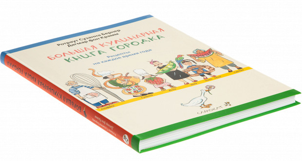 Это книга с иллюстрациями лауреата премии Х.К.Андерсена, немецкой художницы Ротраут Сузанны Бернер, той самой, что нарисовала любимые детьми четыре сезонные книги «Городок», где дотошно изображена жизнь горожан в разное время года — вот собачка резвится в снегу, а вот та же собачка лежит в тени под кустом боярышника. «Большая кулинарная книга» также поделена на сезоны: весна с редиской и пасхальным зайцем, лето — джем из смородины и пирог «Утонувшие вишни», осень — ореховые кренделя и суп-пюре из тыквы, и зима, во время которой советуют готовить репку в карри и салат «Рапунцель». Составлена книга доходчивей некуда, все это полноценные серьезные рецепты, которые взяты не с потолка, а собраны гастрономическим писателем, экспертом по вопросам питания и многодетной матерью из Фрайбурга Дагмар фон Крамм. А благодаря иллюстрациям она больше похожа на игрушку, и любая девочка должна мечтать об этом издании, даже если готовить еще не приспичило.
