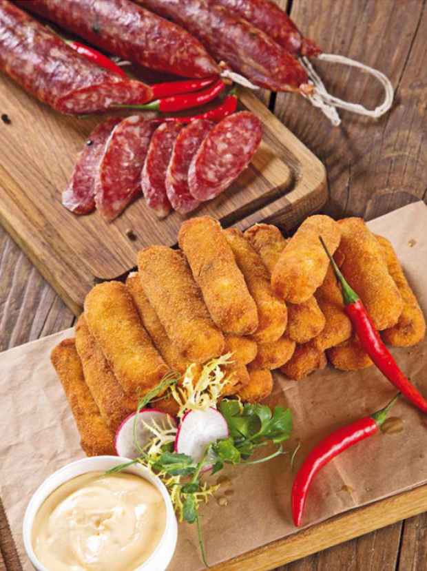 Картофельные крокеты с моцареллой и сыровяленой острой колбасой