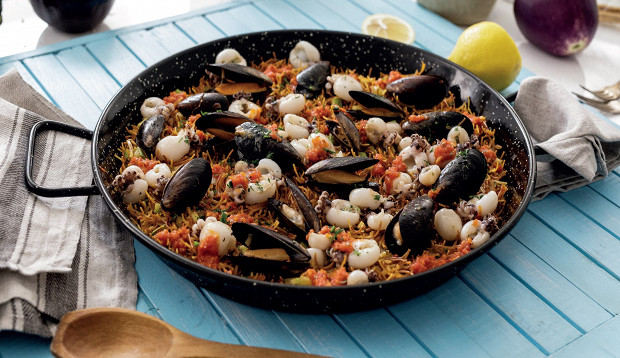 «Судьба закинула меня учиться в Испанию, и, честно признаюсь, я влюбился в нее без памяти. Не потому, что испанцы сделали меня почетным членом Гильдии шеф-поваров Винароса, а за их отношение к жизни и вечную сиесту. И еще за эту лапшу под магическим названием «фидеуа» — она прекрасно получается из лапши «Минутка», той, из которой раньше варили кашу в детском саду. Кашу эту я терпеть не мог, как и прочие кулинарные «шедевры» детсадовского повара в виде морковных котлет и макарон с сахаром. Этот же рецепт вызывает привыкание с первой вилки».