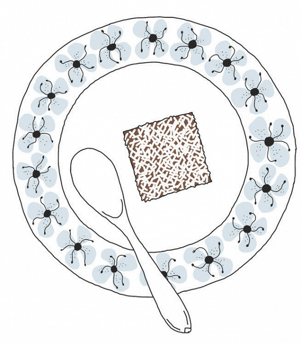«Kärleksmums — один из тех рецептов домашней выпечки, который всегда поднимет настроение. Корень слова mums означает «вкусно», и к нему добавлен второй — kärlek, что значит «очень вкусно», так что понятно, что это правда восхитительно. Другие названия этой выпечки — fiffirutor, mockarutor и snoddas. Kärleksmums представляет собой чудесную смесь темного шоколада и крепкого кофе. Классически его покрывают сахарной глазурью, но нам кажется, что вариант с ганашем роскошнее. Сохраните несколько столовых ложек вашего утреннего кофе, чтобы добавить в ганаш, когда будете печь эти квадратики вечером. Идеальная выпечка для холодного осеннего дня».