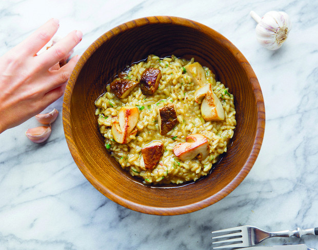 Мы публикуем три рецепта из книги: веганское ризотто из риса арборио, блинчики с топленым маслом и карамелизированными сезонными фруктами и пряный торт с кокосовым кремом, коржи к которому делаются без яиц.