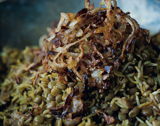 Мы можем часами без толку спорить о том, какому какая еда больше нравится и почему, но так и не приходим к согласию. Но при упоминании меджадры споры стихают. Чуть сладковатый рис с чечевицей, посыпанный мягким жареным луком, с йогуртом и огурцом или просто с греческим йогуртом — вот что в Иерусалиме всякому придется по душе. Лучше подавать это блюдо теплым, но комнатной температуры оно будет так же вкусно».