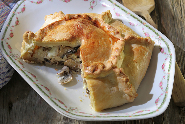 «Курник — большой, «парадный» пирог. На самом деле, это отличный способ накормить целую компанию одной курицей. Посмотрите, как похож русский курник на традиционные английские пироги с курицей. Ничего удивительного: идея та же, исполнение — в зависимости от характерных и доступных продуктов».