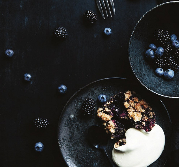 «Обычно я принимаюсь печь этот пирог, когда ягоды в морозильной камере вот-вот издадут свой последний вздох. Иногда это смесь самых разных ягод, но чаще всего в ее состав входят ежевика, черника и малина: они в изобилии растут там, где я живу, и у меня всегда найдется запас. Пищевая сода сделает крамбл еще более рассыпчатым и нежным. Но для приготовления традиционной версии крамбла использовать ее необязательно. Гораздо вкуснее, когда пирог обильно посыпан крошкой из песочного теста. Если вам кажется, что крошки слишком много, вы всегда можете убрать излишек в морозильную камеру и воспользоваться им в другой раз. Замороженную крошку не нужно размораживать — просто посыпьте ее поверх ягод».
