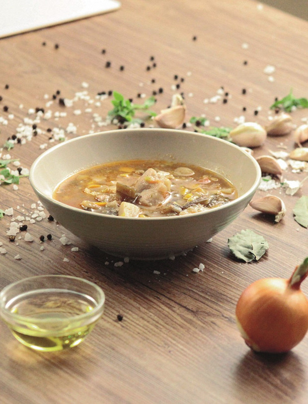 В издательстве «Бомбора» недавно вышла книга с рецептами из передачи — «Просто кухня с Александром Бельковичем». И вот три рецепта из нее: суп из индейки с баклажанами, пита с хумусом из фасоли и рыбный пирог с шампиньонами и пореем.