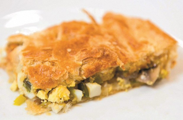 Рыбный пирог с шампиньонами и пореем