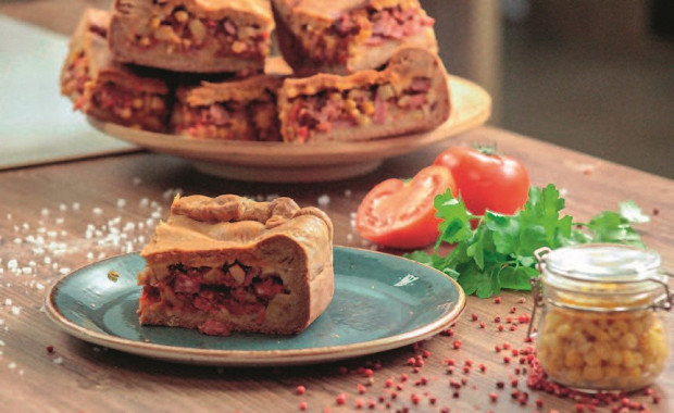 Плотный согревающий пирог, главную скрипку в котором играют специи — кумин и кориандр, благодаря им пирог получается таким ароматным. Начинки в пироге в два раза больше, чем теста: тут и картофель с болгарским перцем, и охотничьи колбаски, и кукуруза, и говяжий фарш. Сытно и удобно — такой пирог можно есть и на следующий день в холодном виде.