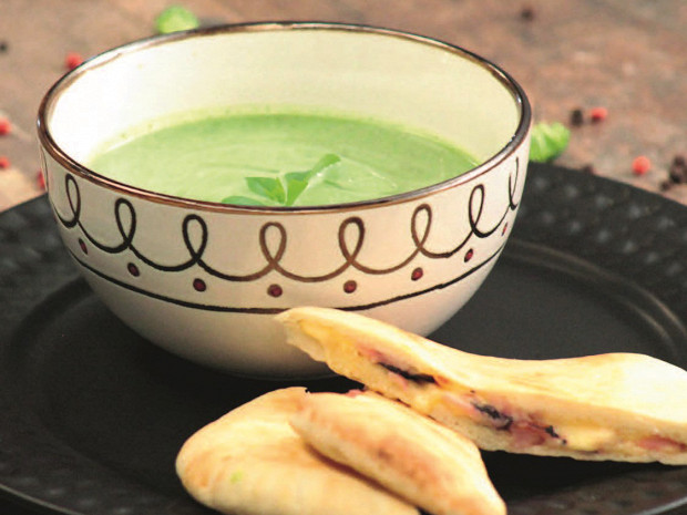 Зеленый крем-суп с питой