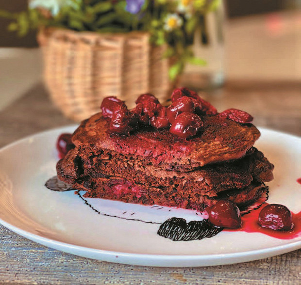 Шоколадные панкейки с вишней