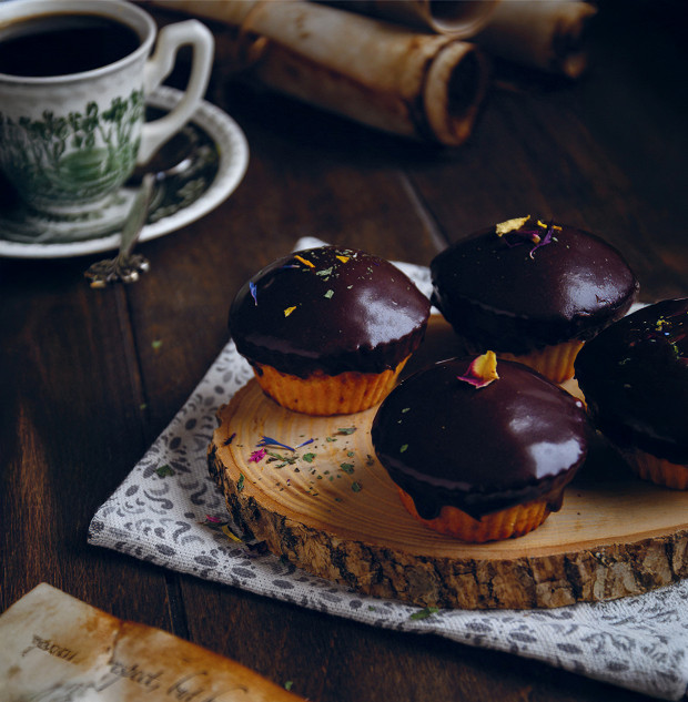 Помимо меда, вынесенного в название, тут есть еще и шоколад — взяты они примерно в равных пропорциях, но меда чуть больше. Мед лучше всего брать жидкий, чтобы его кристаллы не оставляли следов в толще кекса. Украшать кекс можно не только шоколадом, но и джемом или кремом.