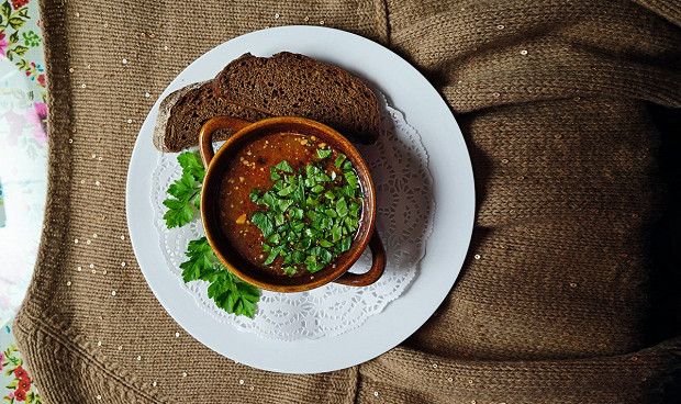 Новый характер традиционному харчо придает дичь — мясо лося, на котором варится бульон. Рецепт из ресторана «Александровский причал» (Весьегонск).