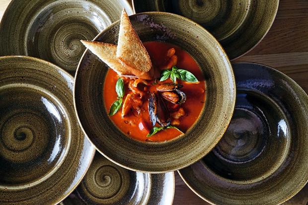 Рецепт из ресторана Porta Rossa. Классический вариант незамысловатого и очень простого супа с морепродуктами.