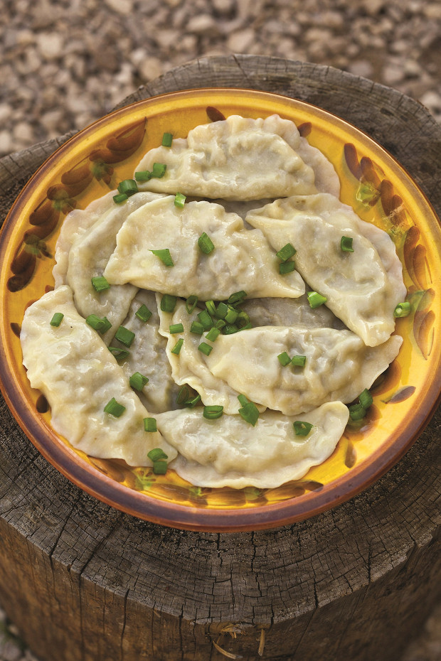 «В отличие от пельменей в варениках в качестве начинки используются уже приготовленные продукты, в данном случае ливер и грибы, и лепятся они простым полумесяцем, поэтому получаются несколько крупнее».
