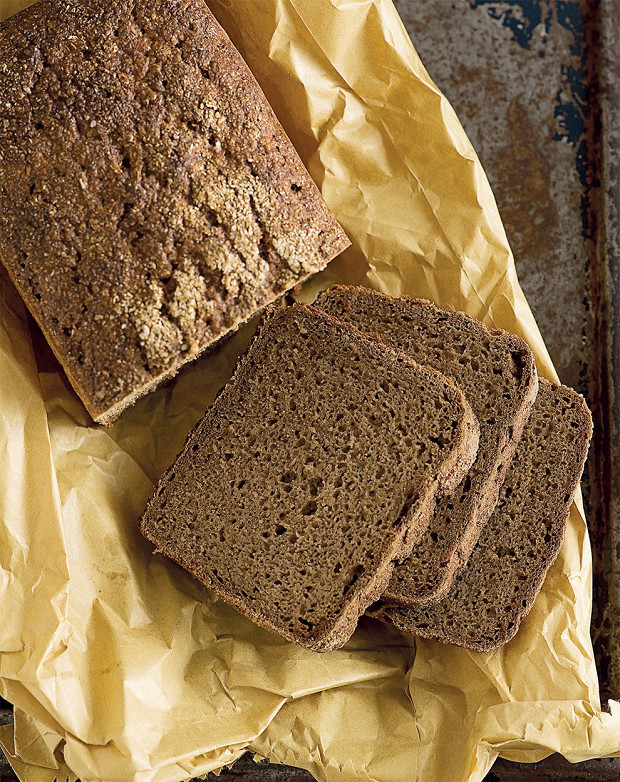«Успех этого рецепта полностью зависит от качества имеющейся у вас ржаной закваски. Ржаная мука не имеет такого высокого содержания клейковины, как пшеничная, и, соответственно, не имеет больших возможностей для того, чтобы растягиваться, захватывать и удерживать пузырьки газа и формировать пористую структуру. 100%-ный ржаной хлеб на натуральном разрыхлителе всегда будет достаточно плотным. Ржаной хлеб дольше не черствеет в сравнении с другими видами хлеба. Тому есть две причины: он гигроскопичен, то есть поглощает влагу из воздуха, и практически не содержит клейковины. В целом ржаной хлеб полезнее для вас, полезнее для вашего желудка, полезнее для вашего пищеварения, полезнее для вашего настроения, но не очень-то подходит для бургеров. Во время брожения, расстойки и выпечки ржаному хлебу требуется поддержка, поэтому для него используются жестяные формочки, служащие опорой тесту, пока он неторопливо поднимается. В печи ржаной хлеб имеет тенденцию быстро пересыхать, а форма помогает удержать часть влаги».