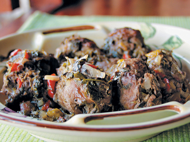 Иду я к мяснику Гоги и беру у него эту суки. Попутно покупаю по мощному пучку кинзы, петрушки, базилика, потом один болгарский перец, а лук, чеснок и морковка в доме найдутся. Дома я сажаю детей за компьютер, чтобы не мешались под ногами, и начинаю ровненько строгать острым ножом мясо на пласты — как на обыкновенные отбивные. Потом беру и беспощадно отбиваю их скалкой — структура мяса повреждается не так сильно, как молотком для мяса или тяпкой. В результате куски трансформируются в более плоские и просторные, как носовые платки. Пока мясо приходит в себя после потрясений, мою в проточной воде все причиндалы вегетарианские: я уважаю вегетарианство, особенно вместе с суки. Вся эта пестрая братия кромсается мелко и ровно и ссыпается в миску. Туда же — соли, черного перца и аджики. Только не той самозваной аджики, которой исключительно тараканов пытать, а настоящей, сделанной дома. Ну не я ее делаю, моя мама, ну и что? Можно еще при желании насыпать разных сунели — тут уж не смею вами руководить, оставляю простор для вашей фантазии. Не отвлекайтесь. Перемешиваем всю эту мелкую ситцевую крошку, и начинается самый ответственный этап: кладете на левую ладонь кусок мяса, правой рукой зачерпываете зелень-мелень и распределяете по мясу. Потом сворачиваете плотный рулетик. Понятно? Давайте еще раз. Неплохо. Они такие поросята получаются, рулетики эти самые. Теперь вы складываете их в кастрюльку с толстыми стенками. Ваши предпочтения в жирах не имеют значения: хотите, сливочное масло кладите, хотите, подсолнечным полейте, можно и напополам. Главное — в достаточном количестве, но и не переусердствуйте: лишний жир он всегда лишний. И никакой воды: жидкость из ингредиентов плюс жир — как раз достаточно для прекрасных мягких рулетов! А теперь ставьте на средний огонь и ждите. Вот, закипело, и по кухне поползли запахи — змеи-искусители; тут вы уменьшаете огонь до самого маленького, и пусть наши руле- тики тихонько булькают хоть целый час. Теперь можете отмыть ваши ручки, пропахшие любовью к жизни, и сделать себе маникюр — а можете сделать гарнир к рулетикам. Лично у меня два варианта: картофельное пюре или рис. Можно просто отварить целые аккуратные картошинки.
