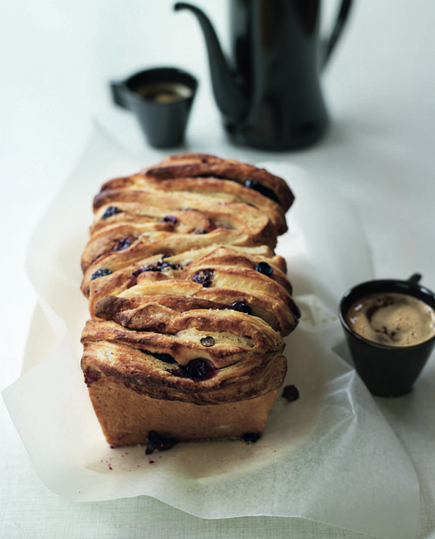 На самом деле это никакой не хлеб, а большая булка, начиненная свежей голубикой и посыпанная сахаром. Поэтому для удобства можно делать не одну буханку, а поделить тесто на несколько булочек.