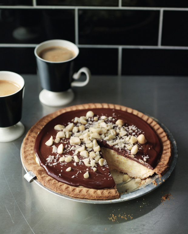 Ганаш из темного шоколада, начиняющий этот пай, лучше всего сочетается с орехами макадамия. Так что постарайтесь не менять их на другие, более доступные.