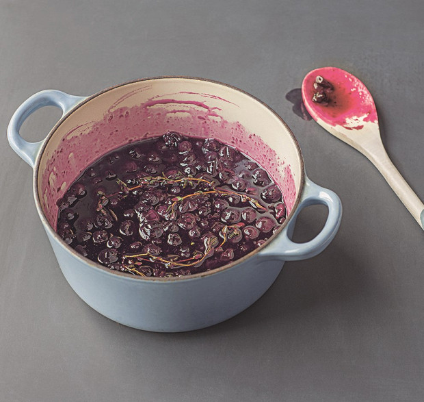«Вопрос викторины: чем отличается компот от кули? Если ответите, что компот готовят из нарезанных кусочками фруктов, отваривая их в сиропе, а кули — это однородное фруктовое пюре, вы настоящий эксперт! (Понравилось? Приглашайте меня на корпоратив, я проведу для вас викторину и даже надену платье того же цвета, что и ваш любимый фрукт.) Но вернемся к нашему рецепту. Мне нравятся компоты в европейском стиле, потому что в них сохраняется текстура фруктов и ягод. (Бонус: и никакой возни с протиранием через сито.) Добавление свежего тимьяна и лимона оживляет вкус компота и делает его очень интересным. Им можно дополнять не только сладкие блюда, но и, например, запеченную баранину. Понимаю, звучит странно, но поверьте мне, сочетание просто феноменальное!»