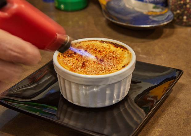 При упоминании горелки на ум сразу приходит крем-брюле. При помощи горелки задача сделать стеклянную сахарную корочку поверх легкого кремового десерта кажется простой как дважды два. Как готовили крем-брюле до того, как придумали горелку? Были специальные чугунные утюжки, которыми прижигали сахар, опытные умельцы делают это под грилем. Но зачем морочиться, если с горелкой весь процесс займет пять секунд от силы? Горелка работает с продуктом более тонко, чем любые другие гаджеты: внутри крем-брюле или нежные блинчики сюзетт остаются легкими и воздушными, а наверху покрываются карамельной скорлупкой.