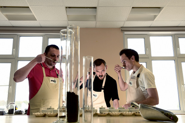 Проверкой сырья занимаются титестеры — дегустаторы, от чьих рецепторов, обоняния и остроты зрения зависит очень многое. Титестеры — люди тонкой организации, кто-то с такими органолептическими настройками рождается, а кто-то осваивает их со временем: на фабрике есть собственная школа, где сотрудников учат правильно дышать при дегустации, правильно ловить оттенки вкуса и аромата и замечать то, что недоступно простым людям.