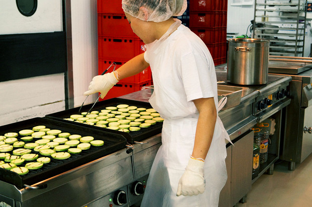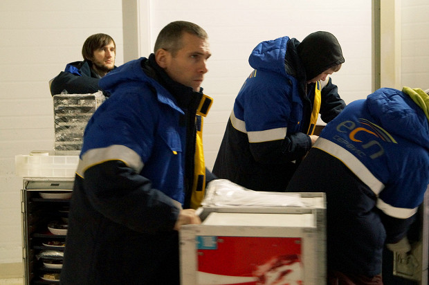 «Чем ваша работа отличается от ресторанной?» — спрашиваю я Фредерика. Он начинает издалека, объясняя, почему во Франции так много хороших ресторанов, а в России — так мало: «Во Франции рестораны работают с двенадцати до двух, а потом вечером с семи до десяти. Это как «Формула-1»: сначала все подготавливается и регулируется, а потом короткий адреналиновый заезд, и вся команда работает безупречно. Адреналин как наркотик, но ты не можешь работать на нем больше трех-четырех часов, иначе свихнешься. Ну а в России рестораны работают по 10–12 часов без перерыва. У нас здесь фабрика-кухня, адреналина немного, потому что все запланировано и люди работают спокойно. Но у нас нет и места для креативности. Каждому работающему на кухне нужно делать все ровно так, как сказано, не отклоняясь ни на сантиметр, чтобы одна порция курицы с картофелем была точно такой же, как другая. И все равно за нашей едой стоит человек, а не машина».