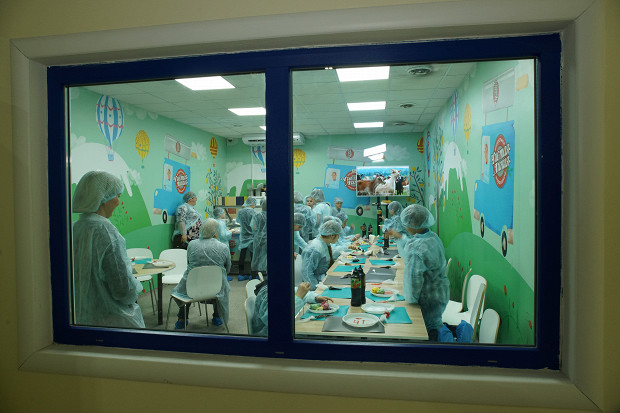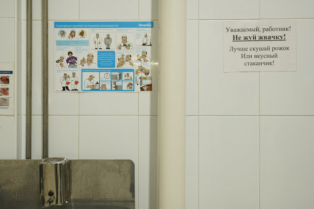 «В час только на одной производственной линии мы способны произвести до 8500 порций мороженого. За рабочий день — 75 000. Но перед нами не всегда стоит такая задача, мороженое — сезонный продукт. Смотрите, куда он полез, я волнуюсь, простите», — вице-президент компании Армен Бениаминов прерывает разговор и с улыбкой торопится усмирить школьника, намеревающегося залезть на спинку скамейки. Школьников уводят на экскурсию, наступает наша очередь. Чтобы попасть в цех, мы проходим санпропускник — ворота откроются только после мытья рук специальным раствором.