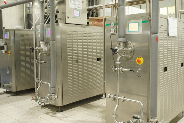 Далее смесь перекачивают в пастеризатор, где она проводит полчаса при температуре 75 градусов. Это нужно, чтобы в молоке не завелись микробы, а те, что туда могли попасть во время смешивания, исчезли.