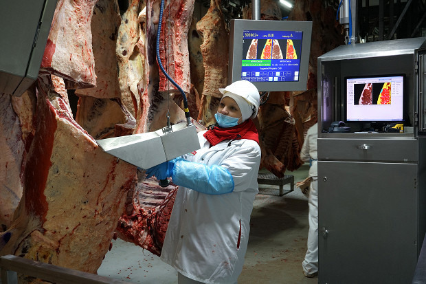 Когда теленок рождается, в течение 45 минут ему ставят чип, который позволяет следить за всеми действиями, которые с ним происходят на протяжении его жизни: кто когда его трогал, чем лечили, когда делали вакцинацию, когда взвешивали. Первые 6–8 месяцев он с матерью, потом его отнимают, до года он на пастбище ест травку, потом его отправляют на фидлот на доращивание — а там 8 фаз, 8 разных рационов».