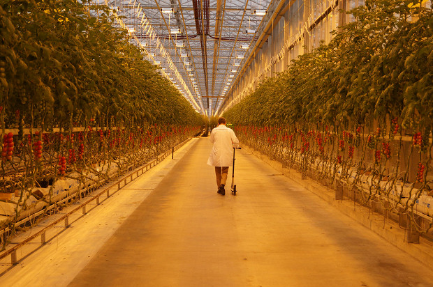 Еще из настоящего. Для полива в основном используется дождевая вода, которую собирают с крыш и хранят в бассейнах. Количество солнечной энергии, полученной теплицами, измеряется — и от этого зависит, сколько времени будут работать лампы, потребляющие дорогую электроэнергию. С насекомыми вредителями борются с помощью их насекомых врагов. На кистях помидоров обрезают лишние цветы, чтобы черри было ровно двенадцать, а обычных — ровно пять: для стандартизации продаж. Между рядами ездят гидравлические подъемные тележки, чтобы можно было дотянуться до верхушек плетей. У каждого овощевода есть рабочий смартфон: на него приходят задания на день, отмечается выполнение заданного и он же учитывает рабочее время. Здесь занимаются сортоиспытаниями, но не в привычном смысле этого слова: высаживают семена не для того, чтобы узнать, как они себя поведут в теплицах, а чтобы понять, как на эти овощи них отреагирует рынок, потому что используются семена гибридов, уже готовых к промышленному производству.
