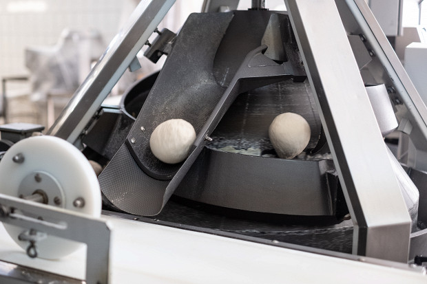 Затем заготовки попадают в округлитель, стремительно превращающий заготовки в ровные круглые шарики. Дальше эти шарики отправляются в шкаф предварительной расстойки, где им предстоит семь минут отдыхать от механических воздействий при определенной температуре и влажности. Благодаря этому отдыху тесто приобретет эластичность, необходимую для раскатки и формовки хлеба.