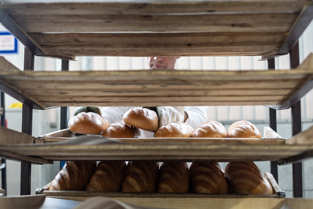 Готовый горячий хлеб автоматически опрыскивают водой, чтобы его корочка стала нарядней, затем вручную укладывают в деревянные лотки хлебных вагонеток и увозят в специальное отделение для охлаждения, где хлеб остывает два с половиной — три часа при температуре 25 градусов, в случае если его будут продавать порезанным, или сразу отправляется в магазины, если его будут продавать целиком. Медленное остывание хлеба — залог мягкости.