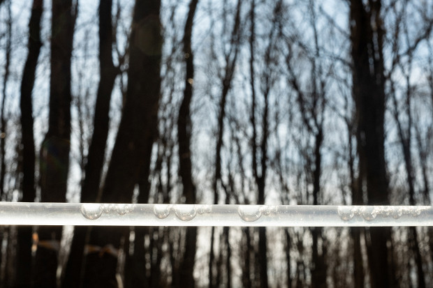 Мы подъезжаем к лесу, издалека кажется, что он блестит на солнце. Так и есть: на ярком солнце бликуют километры прозрачных трубок, которыми окутаны клены. Точнее — 100 километров соко- или кленопровода. На 120 га леса (это примерно 20 тыс. кленов). Эти гектары и тысячи деревьев — всего лишь десятая часть леса, который арендовала компания «Пензенские кленоварни».