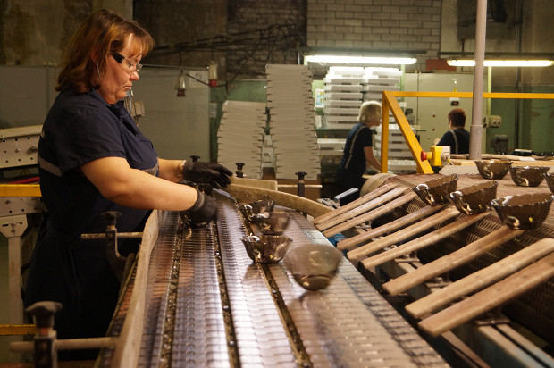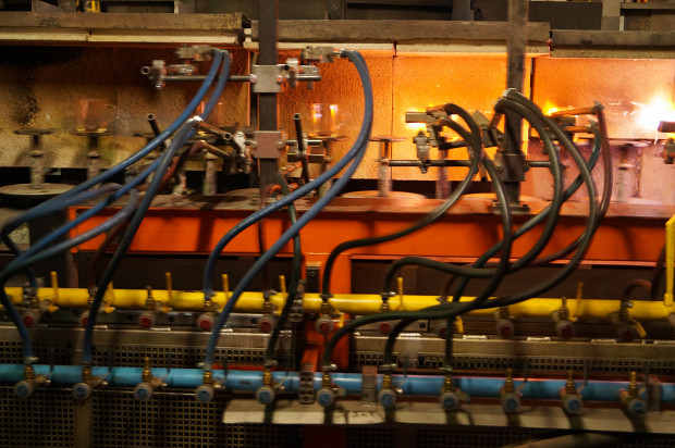 А на Опытном стекольном заводе, можно сказать, решают, из чего в России будут пить. Минимальная экономически выгодная партия — это 200 тысяч штук: бокалов, кружек и так далее. Для каждого артикула нужна своя пресс-форма, каждая стоит 50 тысяч евро. Так что 200 тысяч — это только для спецзаказов, обычный тираж — 5 миллионов экземпляров. 150 тонн изделий в день: вы наверняка видели сделанную здесь пивную кружку, вы, скорее всего, пили из выпущенной здесь чашки или бокала. Для этого за два года до выпуска специальное агентство составляет доклад о будущих трендах, дизайнеры представляют, как это может воплотиться в стеклянных формах, из пары сотен образцов отбирают самые оптимальные — и только после этого запускают в тираж.