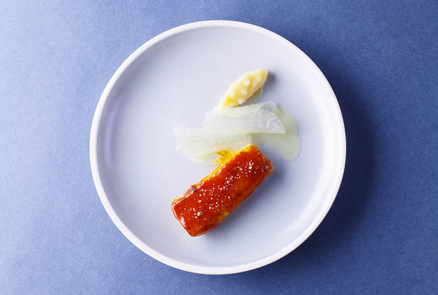 Свинина пока не появилась. У нас нет нормальной свинины. У нас свинина обычно дешманская, для масс-маркета. Нет, как в Испании, специальных пород и откорма. Понимаешь, мы живем в стране, в которой каждый человек ест свинину дома, но не готов заказывать ее в ресторане. У нас начинают появляться хорошие овощи, но я не буду давать здесь русский продукт не очень хорошего качества только потому, что он русский. Я по максимуму отрабатываю русский продукт, но мне глупо отказывать себе в космических розовых томатах с зелеными семечками, которые мне зимой будут привозить из Узбекистана, потому что я считаю, что это лучшие помидоры в мире. Для меня как для повара это просто преступление — их не давать.