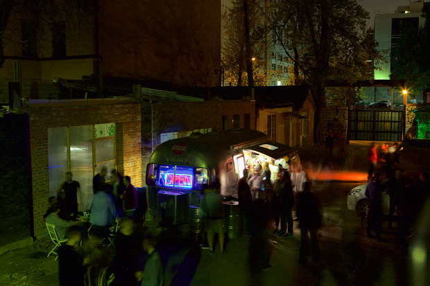 Пугач: Большинство. Но все так или иначе познакомились в банке. Не в одном, в разных, но общались. И подумали: давайте делать шаурму. С чего начали: предложили ребятам из этого Амстердама — давайте мы сделаем франшизу вашу. А чтобы понимать, это никакое не сетевое кафе, там все, как правило, какими-нибудь мигрантами-турками держится, которые по-английски вообще не говорят. Они сказали: мы с вами не будем общаться. Нашли другого товарища, но тот, конечно, такой лощеный: «Да ребята, сейчас я вам все сделаю: 50 тысяч евро, платите сразу, и все будет». Мы ему: оплачиваем билет до Москвы, здесь пару месяцев суточные тебе выдаем, вместе все настраиваем. Он говорит: «Нет, неинтересно, и давайте уже быстрее думайте, потому что у меня проект в Дубае». В общем, начал по ушам ездить. Ну мы и решили сами делать. Искали помещение, потому что думали про помещение сначала. Но мы держали в голове Эрика Риса с его идеей лин-стартапа, это такой подход к разработке экономичного стартапа. И подумали: а вдруг, кроме нас, наша шаурма никому будет не нужна, и, соответственно, через полгода останется только красивое помещение, а гостей как не было, так и не будет. Поэтому решили, что, наверное, лучше фудтрак. Долго выбирали. Сначала хотели привезти даблдекер — двухэтажный английский автобус, нашли его даже, но потом оказалось, что он по высоте не соответствует нормам, его привезти нельзя. Мы нашли спиленный — выяснилось, что его нельзя везти, так как он старый. Мы придумали, как и это обойти: ввезти как историческую ценность. А потом оказалось, что буквально пару месяцев назад был принят закон, о запрете ввоза праворульных автобусов. Мы такие: ну ешкин кот! В итоге влюбились в Airstream, заказали его на eBay. Причем экономили на всем, сами купили в Штатах его, до этого я в Штатах не был ни разу, нашли, как его довезти до порта — все через интернет, — как его погрузить в порту. Потом привезли в Германию, увидели, какой он огромный. Снова погрузили в порту, довезли его до Питера, растаможили и из Питера уже привезли на машине.