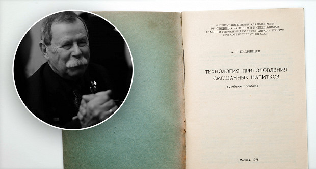 Старейший бармен России Александр Георгиевич Кудрявцев начинал работу в 1960-х, смешивал напитки во многих ленинградских барах, обучил огромное число советских барменов, а в 1978 году он выпустил учебное пособие «Технология приготовления смешанных напитков» — и это был первый в стране подробный барменский учебник. Мы взяли у него интервью для нашего номера про русскую коктейльную культуру.