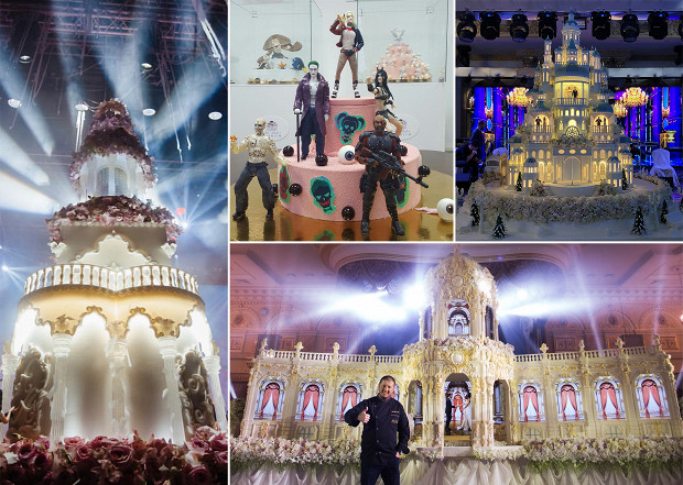 Четырехметровый работающий фонтан Треви из белого шоколада. Многоярусные сказочные замки. Родовые вайнахские башни. Композиция из бабочек и букетов под люстрой из карамели. Адмиралтейство с корабликом на шпиле. Съедобный Леонид Агутин за белоснежным роялем, также съедобным. Александр Овечкин с Кубком Стэнли в руках на кондитерском пьедестале. Бари Алибасов за ударной установкой. Царский венец с двойниками Филиппа Киркорова.