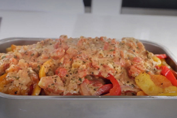 - Если время позволяет, курицу и овощи можно обжарить заранее, также заранее приготовить сливочный соус и сложить все в противень. Тогда за полчаса до подачи горячего вам останется убрать заготовку в духовку, и курица попадет на стол с пылу с жару.