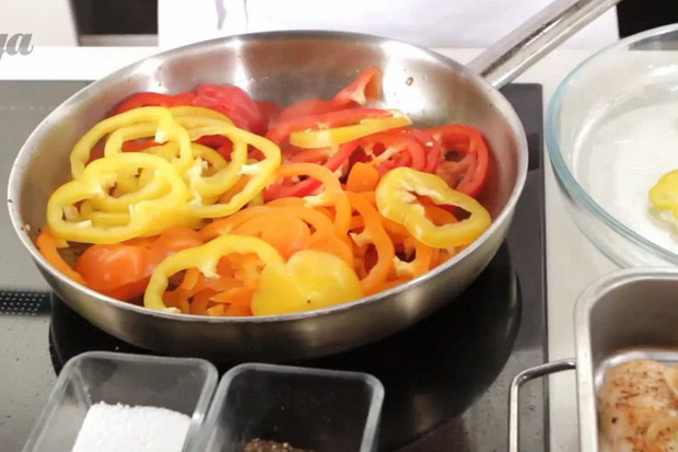 - Перец для гарнира выбирайте разных цветов — так блюдо получится наряднее.