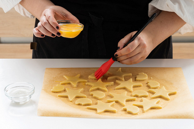 Возьмите еще 10 мл меланжа и смажьте им поверхность печений.