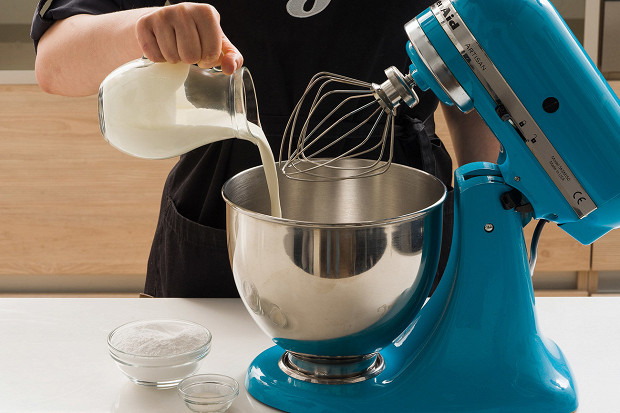 Аккуратно, лопаткой, вмешайте в сливки сметану (750 г), стараясь не потерять объем, и уберите крем в холодильник.