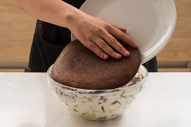 Переверните миску на большое блюдо и в таком виде уберите в холодильник.