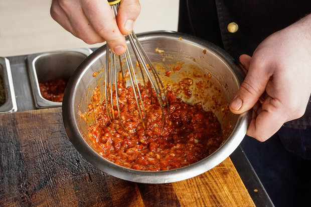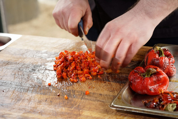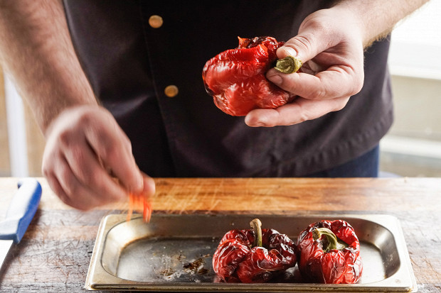 Я предлагаю маринад из печеных перцев — так, в турецких традициях, мы маринуем мясо в ресторане Levantine. Можно взять готовую перечную пасту, например турецкого же происхождения, ее продают под этикеткой мухаммара. Но домашний, свежеприготовленный маринад хорош своей нежностью, умеренной остротой, легкими печеными нотами, и он точно интереснее любого кетчупа.