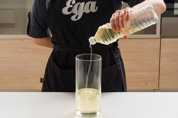 Перелейте растительное масло к высокий стакан или вазу, охладите в холодильнике или морозилке. Вам вполне хватит 500 мл.