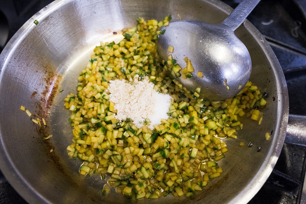 Кроме того, нужно добавить смесь горячей воды и картофельного крахмала, буквально 1 столовую ложку или две, чтобы начинка стала вязкой. Пропорции такие: на 1 часть крахмала 2,5 части горячей воды.