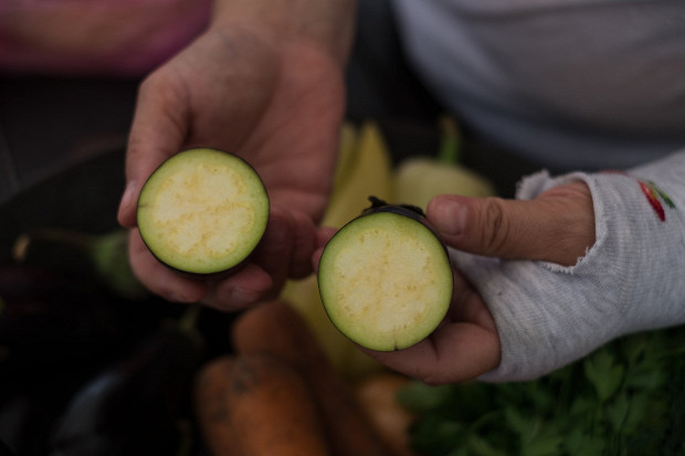 Баклажаны для икры должны быть мягкими внутри, без семечек, вот как этот. В июле они все молодые и без семечек. У взрослых семечки были бы ярко выраженными, и все они попали бы в икру.
