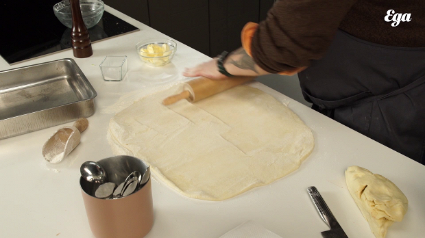 Раскатайте больший кусок теста, нужная толщина пласта — 1 см. Почему нужна такая толщина: пирог готовится долго, а самое вкусное в бэлише — нижний слой теста, и если он будет слишком тонким, то просто высохнет, и вы не получите этой пропитанной соком корочки.