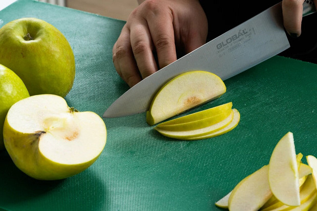 Три крупных кисло-сладких яблока нарежьте тонкими дольками.