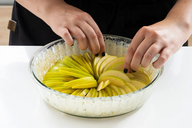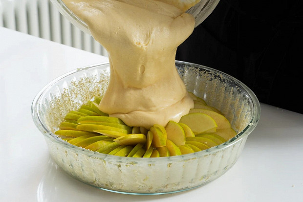 По поводу теста всегда много споров. Есть вариант шарлотки с невзбитым, плотным, резиновым тестом, которое смешивается с яблоками и запекается. Я такой вариант шарлотки не люблю: тесто получается тяжелым, а из-за внедренных в него кусочков яблок еще и мокрым. Мне нравится, когда яблоки отдельно, а тесто отдельно, причем яблоки — на дне, где они не только пропекаются, но и слегка поджариваются и становятся чуточку карамельными. А тесто, которым яблоки нужно просто залить, похоже на бисквитное, пышное, с тонкой кремовой корочкой. Все, что требуется сделать, — взбить белки отдельно от желтков в пышную крепкую пену, как для меренги, от этого в тесте появится нежность и дополнительный объем. И муку лучше просеивать, чтобы тесто было более воздушным. Потратите на 10 минут больше, но и шарлотка будет интереснее. Нет, конечно, предела совершенству, можно приготовить яблоки в карамели или потушить их в каком-нибудь ароматном алкоголе типа бренди. Но на мой взгляд шарлотка — это такая сиюминутная прихоть, которую хочется воплотить в жизнь и получить на стол немедленно и с наименьшими хлопотами, поэтому мой рецепт из серии «проще не бывает».